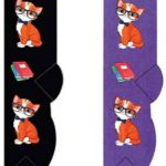 Foozy’s Women’s Professor Cat Crew Socks (2 Pr) Black, Purple